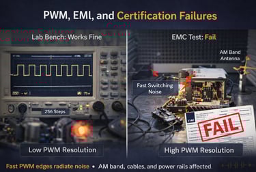 One of the most common beginner mistakes is treating PWM frequency as an arbitrary value that can be chosen without much thought. In industry, PWM frequency is a carefully selected design parameter that affects efficiency, noise, EMI, thermal behavior, and even regulatory compliance.